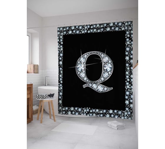 Штора (занавеска) для ванной JoyArty "Буква Q" из сатена, 180х200 см с крючками, sc_3470Q