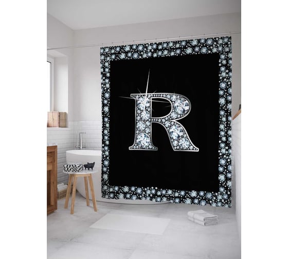 Штора (занавеска) для ванной JoyArty "Буква R" из сатена, 180х200 см с крючками, sc_3470r