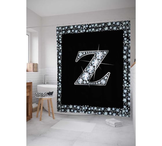 Штора (занавеска) для ванной JoyArty "Буква Z" из сатена, 180х200 см с крючками, sc_3470Z