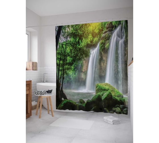 Штора (занавеска) для ванной JoyArty "Быстрый водопад" из сатена, 180х200 см с крючками, sc_19685