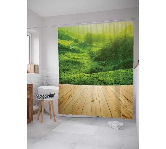 Сопутствующие товары для шторки-занавески JOYARTY Чайные плантации из сатена, 180х200 см с крючками