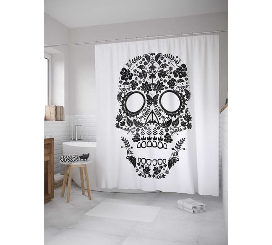 Сопутствующие товары для шторки-занавески JOYARTY Череп монохром из сатена, 180х200 см с крючками