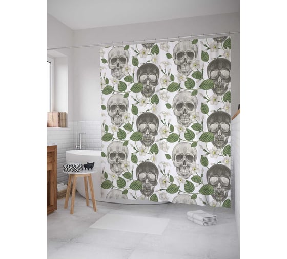 Сопутствующие товары для шторки-занавески JOYARTY Черепы и листья из сатена, 180х200 см с крючками