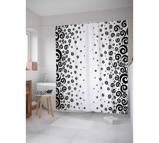 Сопутствующие товары для шторки-занавески JOYARTY Черные спирали из сатена, 180х200 см с крючками