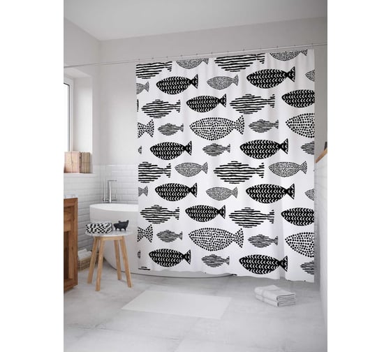 Сопутствующие товары для шторки-занавески JOYARTY Чешуйчатые рыбки из сатена, 180х200 см с крючками