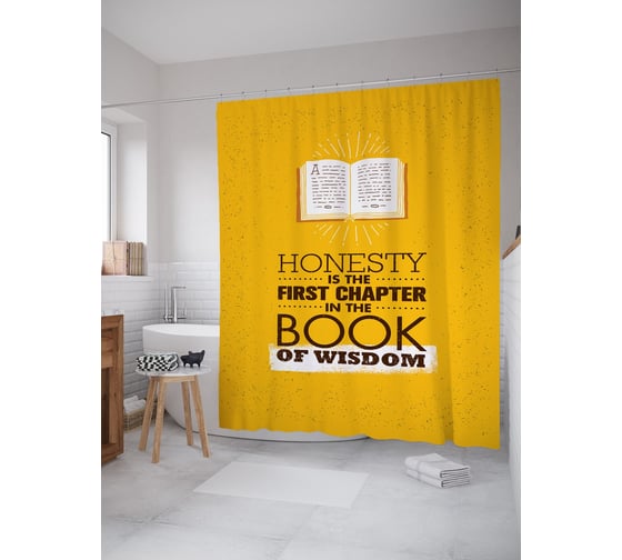 Штора (занавеска) для ванной JoyArty "Честность - первая глава в книге мудрости" из сатена, 180х200 см с крючками, sc_52945