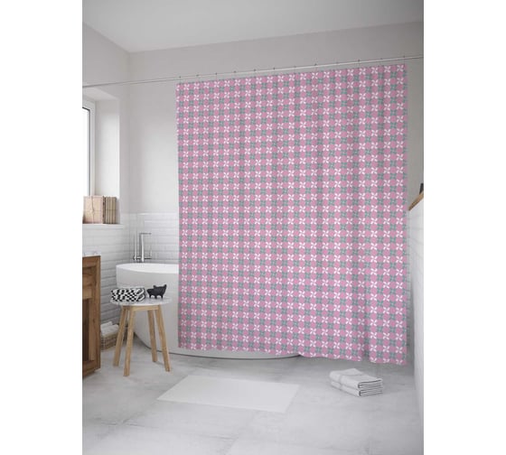 Штора (занавеска) для ванной JoyArty "Четыре лепестка" из сатена, 180х200 см с крючками, sc_31834