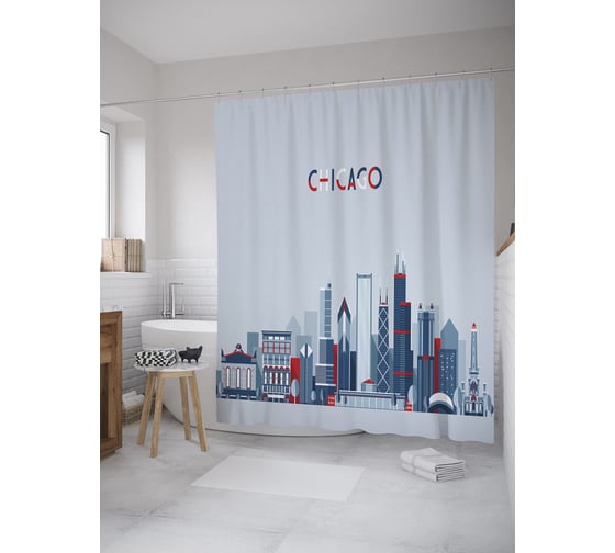 Сопутствующие товары для шторки-занавески JOYARTY Чикаго арт из сатена, 180х200 см с крючками