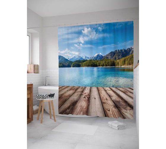 Штора (занавеска) для ванной JoyArty "Чистейшие озера" из сатена, 180х200 см с крючками, sc_19332