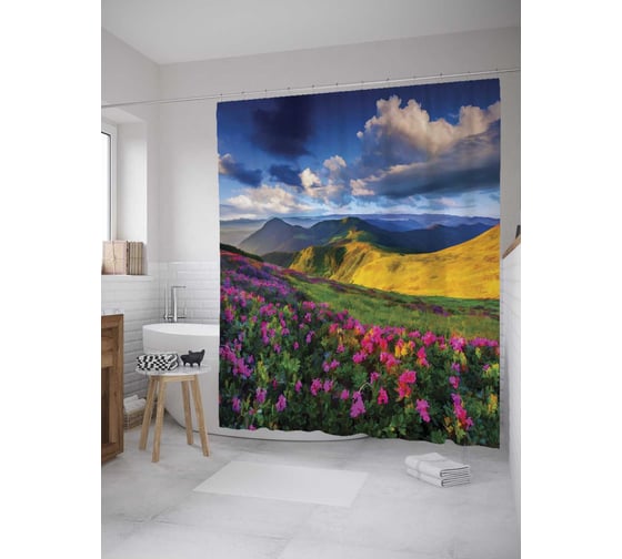 Штора (занавеска) для ванной JoyArty "Чистые холмы" из сатена, 180х200 см с крючками, sc_9257