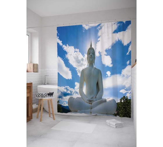 Штора (занавеска) для ванной JoyArty "Чистый разум" из сатена, 180х200 см с крючками, sc_14104
