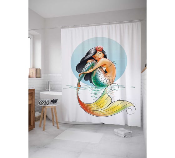 Штора (занавеска) для ванной JoyArty "Чудная русалка" из сатена, 180х200 см с крючками, sc_18946