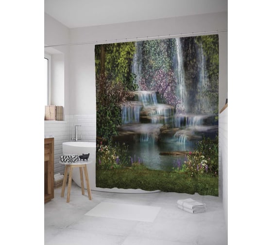 Штора (занавеска) для ванной JoyArty "Чудный водопад" из сатена, 180х200 см с крючками, sc_10153