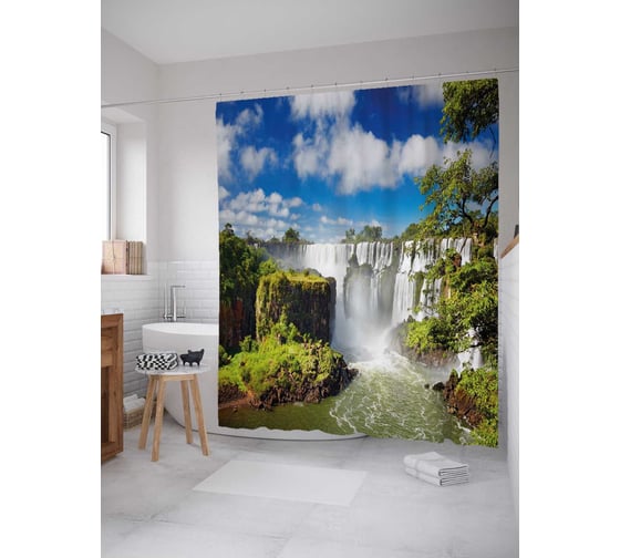 Штора (занавеска) для ванной JoyArty "Чудо-водопад" из сатена, 180х200 см с крючками, sc_21518