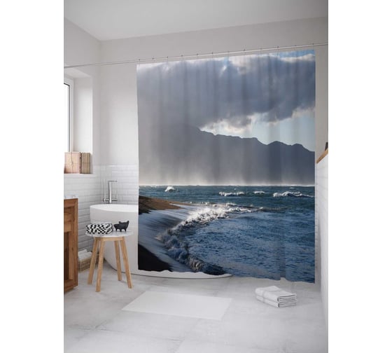 Штора (занавеска) для ванной JoyArty "Далекий остров" из сатена, 180х200 см с крючками, sc_12876
