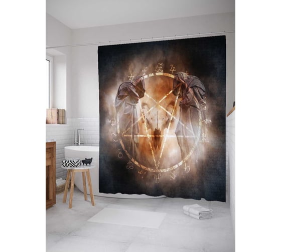 Штора (занавеска) для ванной JoyArty "Демонический ритуал" из сатена, 180х200 см с крючками, sc_22103