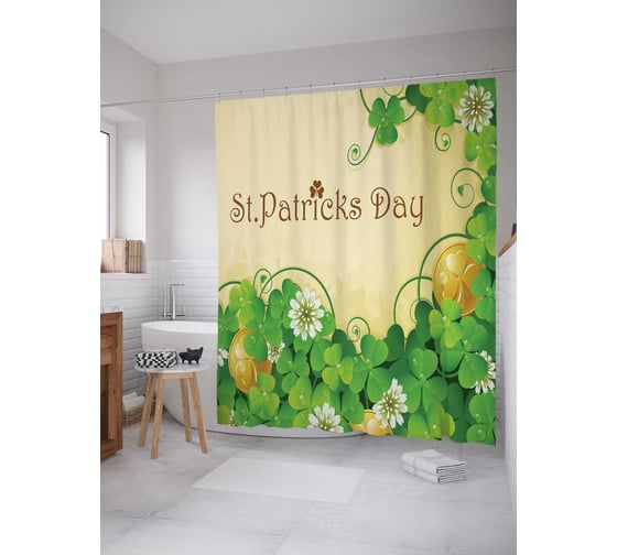 Штора (занавеска) для ванной JoyArty "День Святого Патрика" из сатена, 180х200 см с крючками, sc_7385