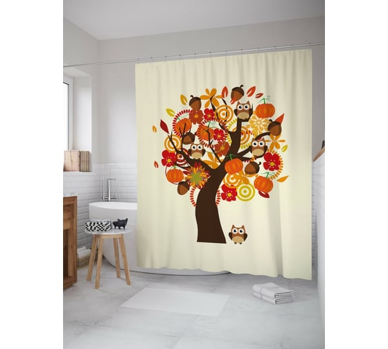 Штора (занавеска) для ванной JoyArty "Дерево Благодарения" из сатена, 180х200 см с крючками, sc_53267