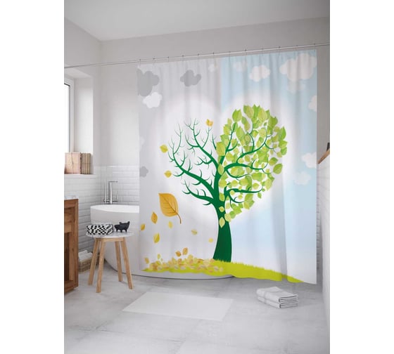 Штора (занавеска) для ванной JoyArty "Дерево с половиной сердца" из сатена, 180х200 см с крючками, sc_13449