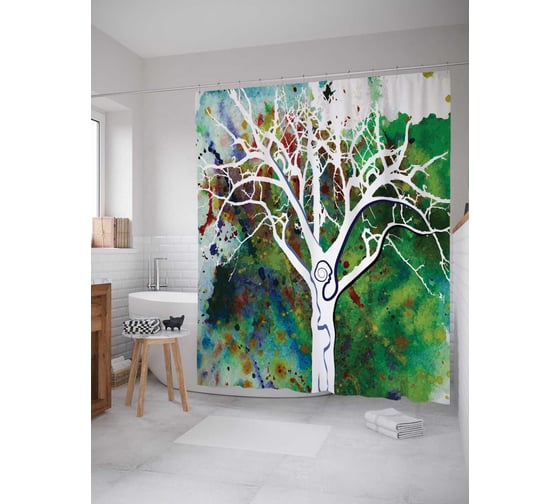 Сопутствующие товары для шторки-занавески JOYARTY Дерево с узорами из сатена, 180х200 см с крючками