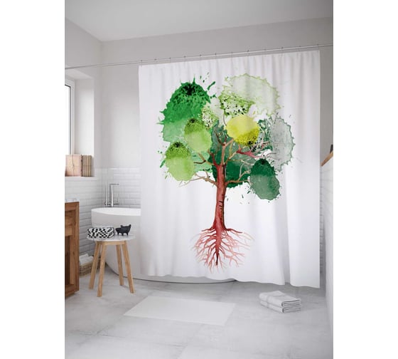 Штора (занавеска) для ванной JoyArty "Дерево в красочных пятнах" из сатена, 180х200 см с крючками, sc_16031