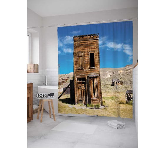 Штора (занавеска) для ванной JoyArty "Деревянная декорация" из сатена, 180х200 см с крючками, sc_21325
