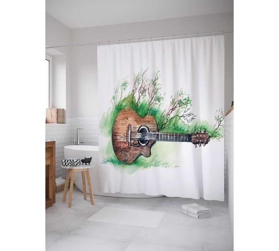 Штора (занавеска) для ванной JoyArty "Деревянная гитара" из сатена, 180х200 см с крючками, sc_12677
