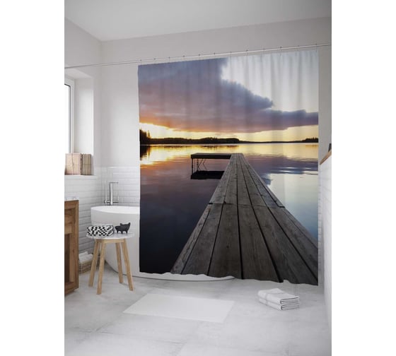 Штора (занавеска) для ванной JoyArty "Деревянный причал" из сатена, 180х200 см с крючками, sc_32142