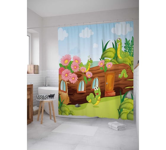 Штора (занавеска) для ванной JoyArty "Детский домик" из сатена, 180х200 см с крючками, sc_30034
