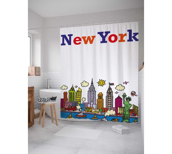 Сопутствующие товары для шторки-занавески JOYARTY Детский Нью-Йорк из сатена, 180х200 см с крючками