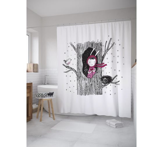 Штора (занавеска) для ванной JoyArty "Девочка в дупле дерева" из сатена, 180х200 см с крючками, sc_59811