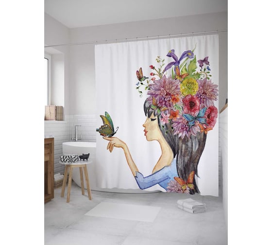 Сопутствующие товары для шторки-занавески JOYARTY Девушка Лето из сатена, 180х200 см с крючками