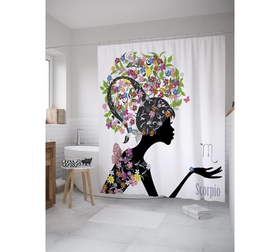 Сопутствующие товары для шторки-занавески JOYARTY Девушка Скорпион в цветах из сатена, 180х200 см с крючками