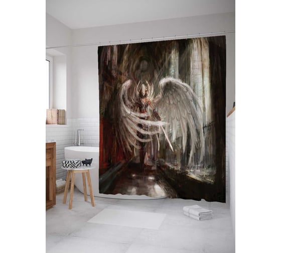 Штора (занавеска) для ванной JoyArty "Девушка-воин с крыльями" из сатена, 180х200 см с крючками, sc_12914