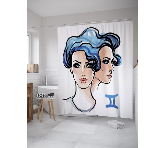 Штора (занавеска) для ванной JoyArty "Девушки Близнецы" из сатена, 180х200 см с крючками, sc_60348
