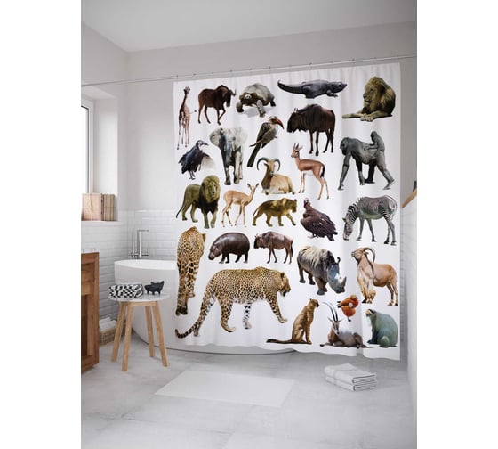 Сопутствующие товары для шторки-занавески JOYARTY Дикая фауна из сатена, 180х200 см с крючками