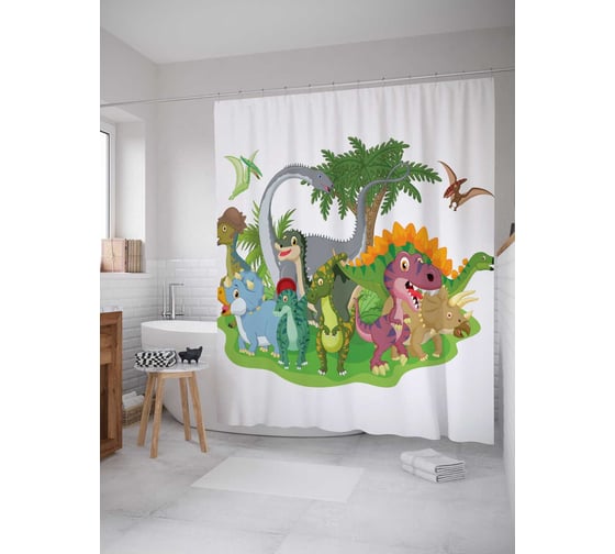 Сопутствующие товары для шторки-занавески JOYARTY Динозавры играются из сатена, 180х200 см с крючками