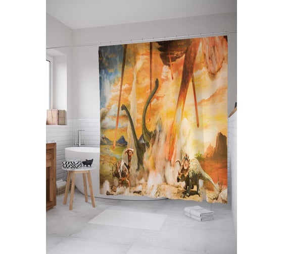 Сопутствующие товары для шторки-занавески JOYARTY Динозавры в опасности из сатена, 180х200 см с крючками