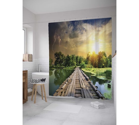 Штора (занавеска) для ванной JoyArty "Дневная молния" из сатена, 180х200 см с крючками, sc_8743