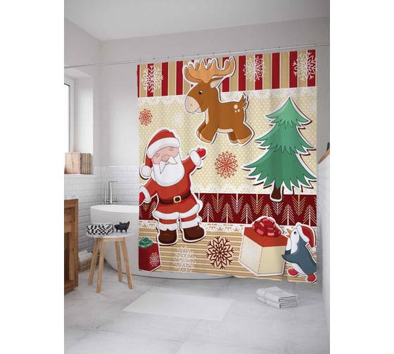 Сопутствующие товары для шторки-занавески JOYARTY Добрый Санта Клаус из сатена, 180х200 см с крючками