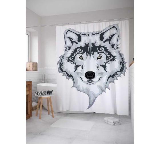 Штора (занавеска) для ванной JoyArty "Добрый волк" из сатена, 180х200 см с крючками, sc_22169