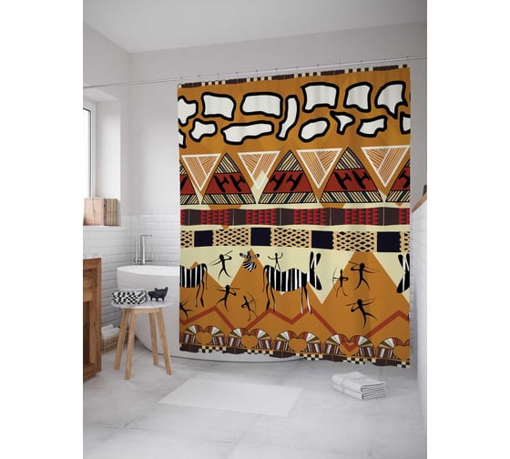 Штора (занавеска) для ванной JoyArty "Доисторические узоры" из сатена, 180х200 см с крючками, sc_18557