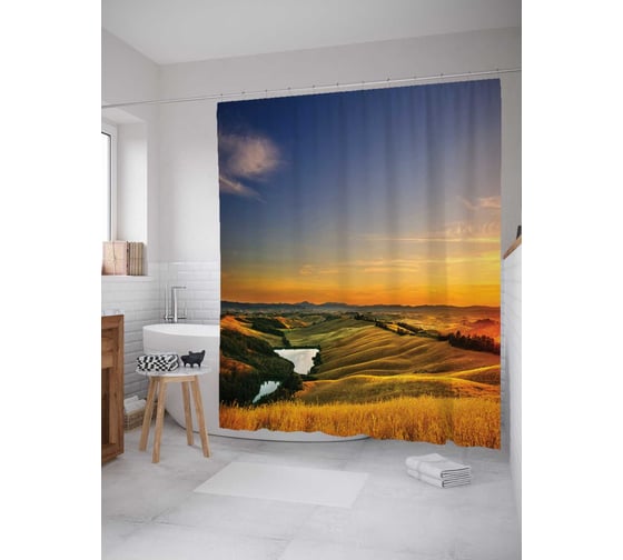 Штора (занавеска) для ванной JoyArty "Долина желаний" из сатена, 180х200 см с крючками, sc_14595