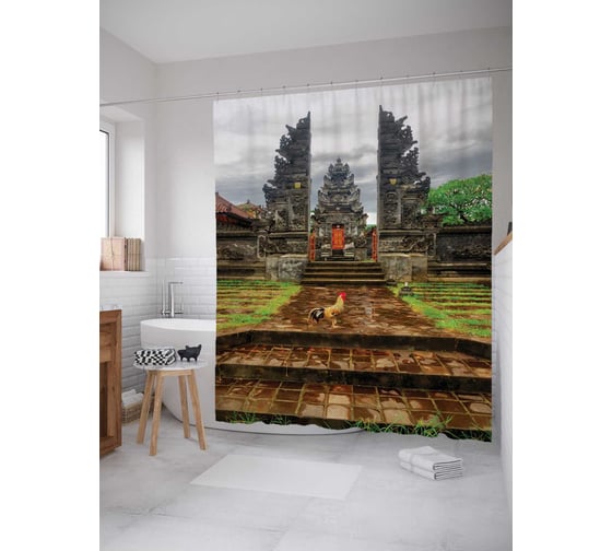 Штора (занавеска) для ванной JoyArty "Дорога к императору" из сатена, 180х200 см с крючками, sc_16206