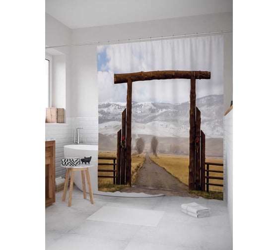 Штора (занавеска) для ванной JoyArty "Дорога в горы" из сатена, 180х200 см с крючками, sc_37919