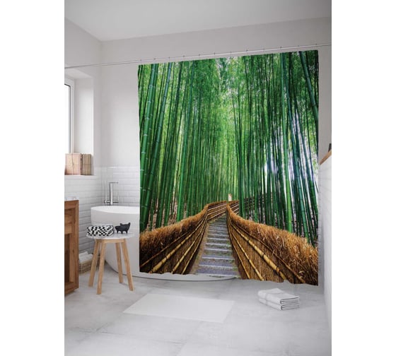 Сопутствующие товары для шторки-занавески JOYARTY Дорожка в бамбуковом лесу из сатена, 180х200 см с крючками