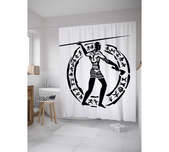 Штора (занавеска) для ванной JoyArty "Древняя охота" из сатена, 180х200 см с крючками, sc_35774