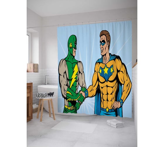 Штора (занавеска) для ванной JoyArty "Дружба героев" из сатена, 180х200 см с крючками, sc_38713