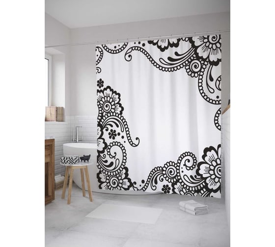 Сопутствующие товары для шторки-занавески JOYARTY Дудлинг цветы из сатена, 180х200 см с крючками