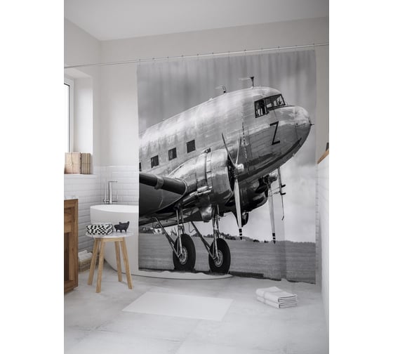 Штора (занавеска) для ванной JoyArty "Дуглас ДС2" из сатена, 180х200 см с крючками, sc_39093